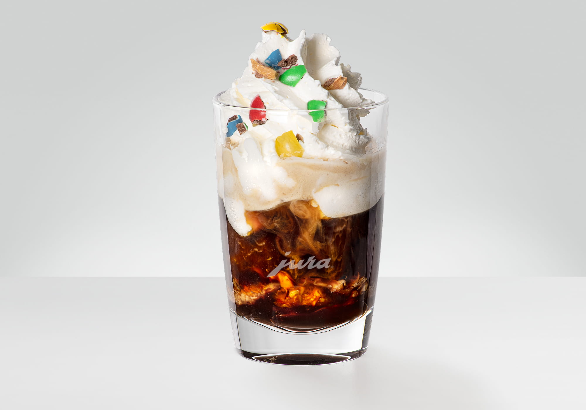 Hot espresso with cold vanilla cream.